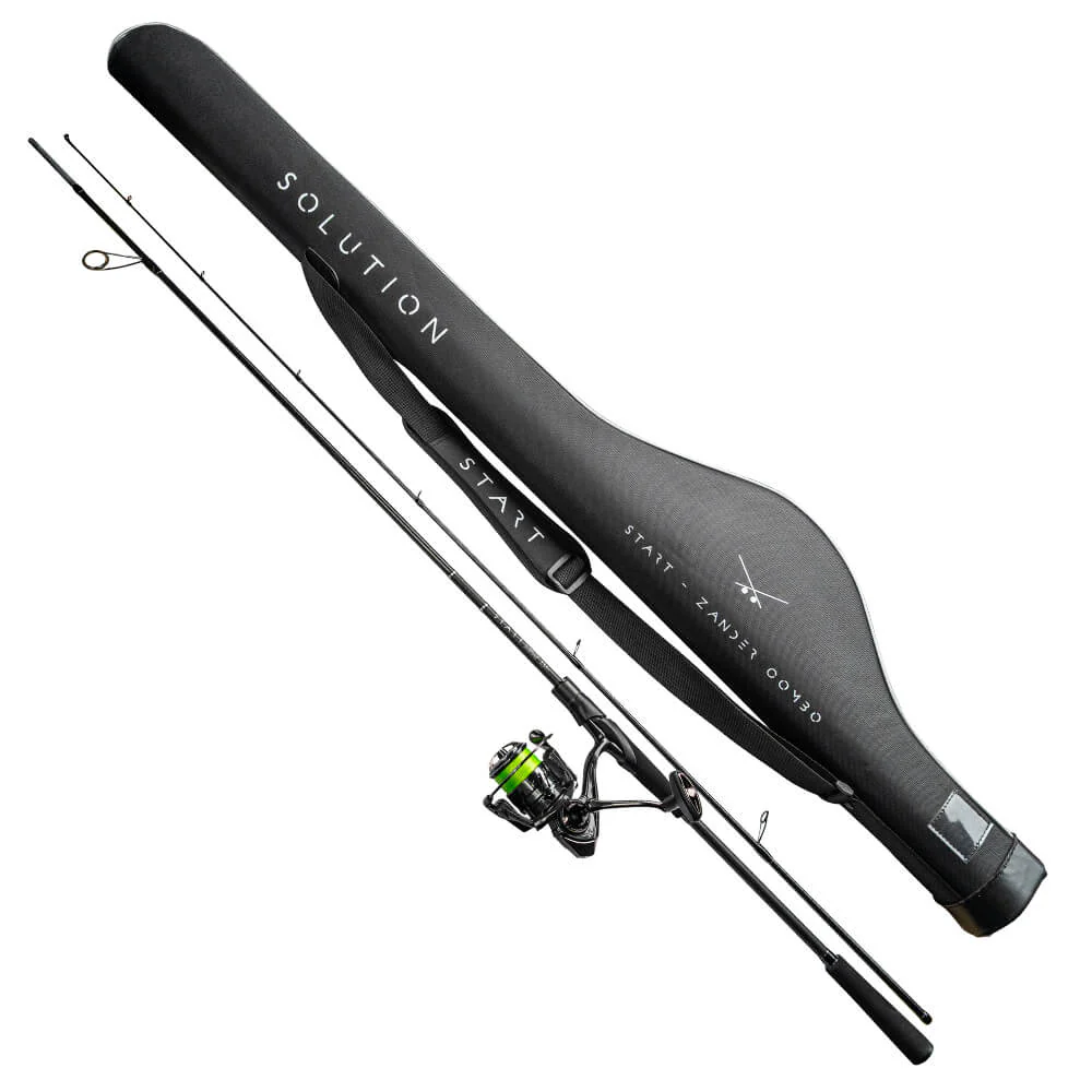 Die BIG L Solution Start Combo Zander besteht aus einer 2,55 m langen Rute mit 10-45 g Wurfgewicht und der fürs Zanderangeln perfekten Solution Start 3000 Stationärrolle, welche mit der 8fach geflochtenen Solution Start Schnur in 0,20 mm bespult ist. Die Rute ist leicht, sensibel, schnell und dennoch mit starkem Rückgrat für sicheres Hakensetzen und harte Drills. Mit dieser Rute lassen sich perfekt 8–14 cm Gummifische and Jigköpfe von 7 bis 21 g, aber auch andere zandertypische Montagen fischen. Egal ob Stillgewässer oder Fluss, man kommt mit ihr super zurecht. Die 9 kg Bremskraft der 3000er Stationärrolle hilft, auch kapitale Fische sicher und souverän auszudrillen. Hilfreich ist da auch die Power der Schnur, die mit einer Tragkraft von 11,2 kg ordentliche Reserven bietet. Dank der sehr glatten Struktur werden weite Würfe ermöglicht und ist sie in den Ringen angenehm leise. Trotzdem ist sie sehr abriebfest, was gerade an Steinpackungen ein großer Pluspunkt ist.