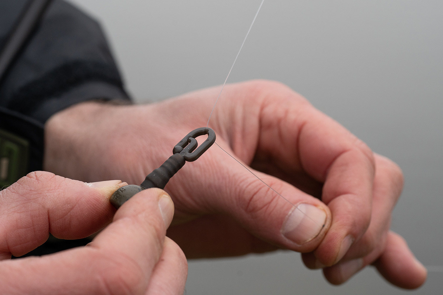 Dieses tarnfarbene, sorgfältig designte Back Lead kann ganz einfach an der Hauptschnur platziert werden. Der obere Teil des Bleis ist aus einem sehr glatten Material und wurde in seiner Form so optimiert, dass es mit minimalstem Widerstand über die Schnur gleiten kann. Der Sleeve, der beide Teile verbindet, wurde relativ starr gehalten um für Festigkeit zu sorgen. Nur durch eine angemessene Menge an Druck können die beiden Teile getrennt werden. Durch ein Verschieben des Sleeves über das obere Teil des Backleads kann der Angler die Menge an Druck, die nötig ist, um beide Teile zu trennen, erhöhen.